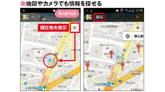 現在地から近いドラッグストアを検索 Standby